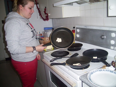 Scoop a laddle-full of mixture into the lightly greased pan.